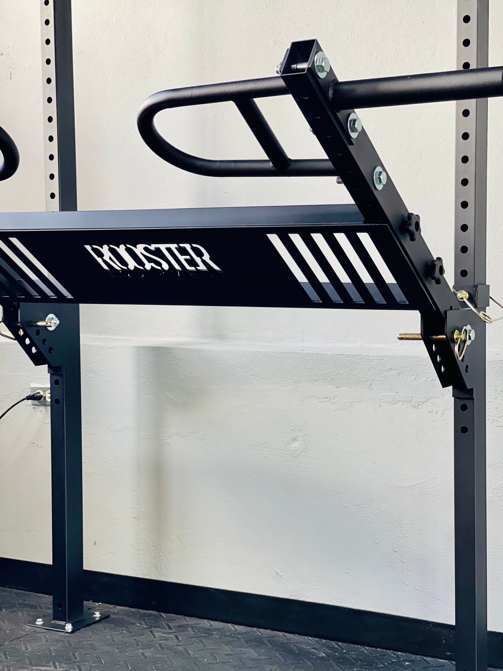 Convierte tu rack en una máquina de Leg Press simplemente colocándola en los Rooster ISO Gunner Arms existentes, usando los pines de fácil acceso, y usted tendrá su propia máquina para hacer sus ejercicios de piernas sin necesidad de una unidad independiente. También a la altura necesaria puede utilizarse para hacer ejercicios de brazos como el famoso ‘Preacher Curl’.