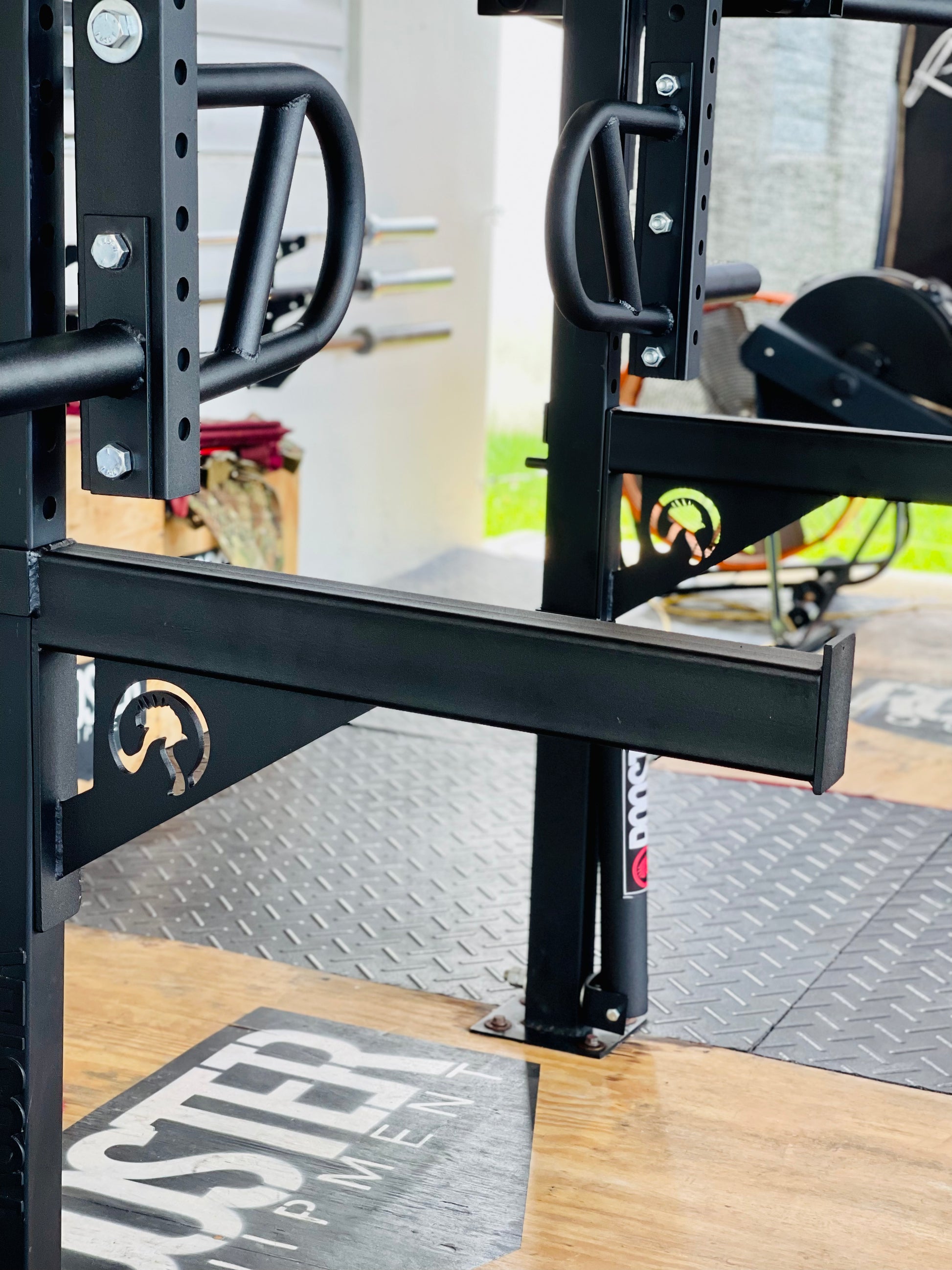 Rooster Spotter Arms proporcionan seguridad adicional cuando levante pesos solo. Construido con acero de calibre 11 de peso, estos Spotter sostendrán lo suficiente como para entrenar confiados. Muy fáciles de ajustar.