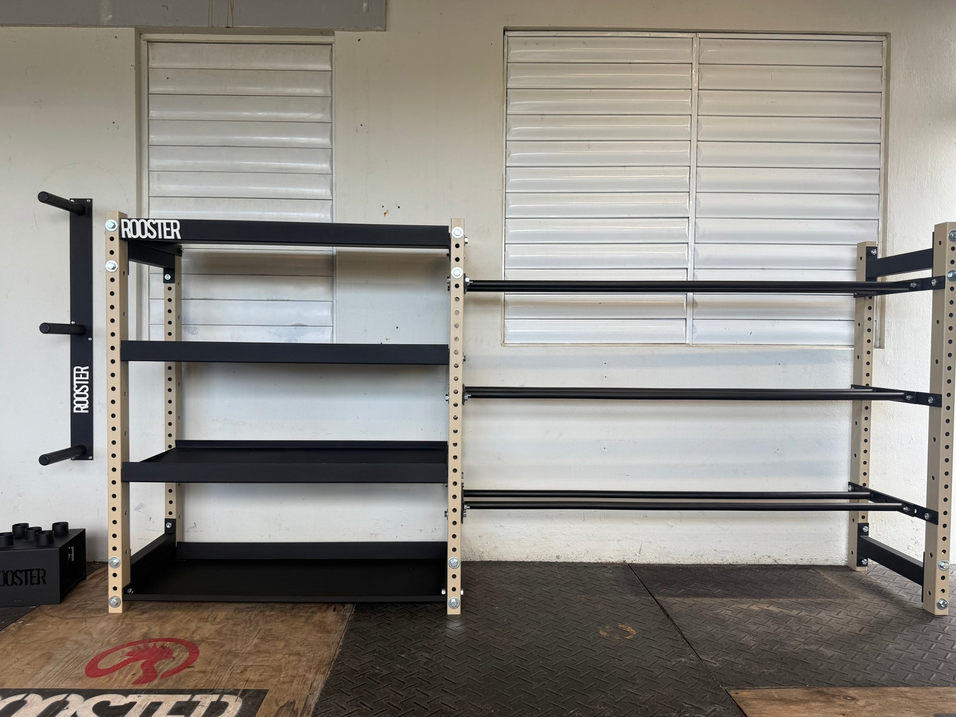 Nuestro Storage Pro-Plus es un modelos robusto y completo donde podrás almacenar dumbbells, kettlebells, bolas medicinales o lo que desees! Ya que las tablillas son en acero de 1/8” de grosor y no te limitará en guardar lo que te propongas! Hecho de acero galvanizado de gauge 12 de 2”x3" y tablillas 2’x4’ para dumbbells y kettlebells entre otras cosas y las tablillas de 6’ para sus platos, bolas de medicina, etc.
